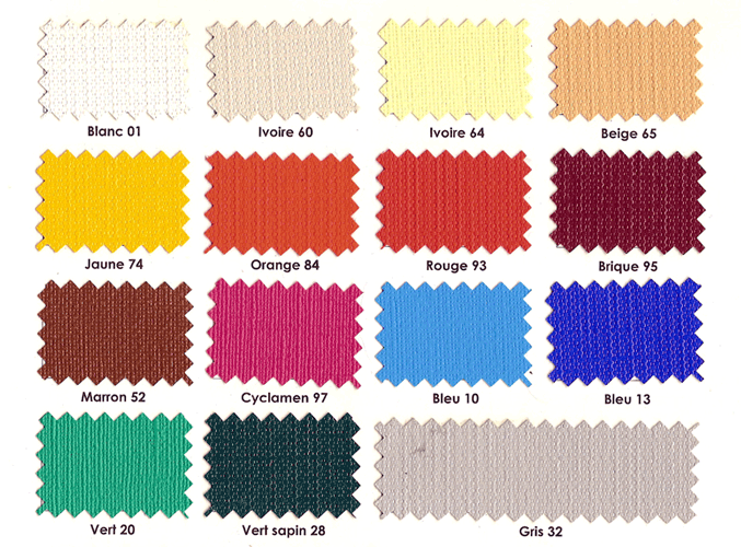 Toile enduite PVC 550 g/m2 mat "grain toile", Ignifugée M2 Toile résistante ignifugée dans la masse M2 réaction au feu (normes CTS). Particulièrement adaptée en installation permanente. Excellente tenue aux UV Aspect impeccable dans la durée, facilement lavable.