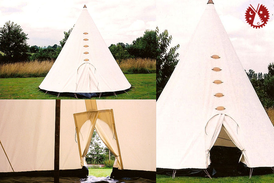Toile coton 280 g/m2. Traité 2I(imperméable et imputrescible). Hauteur 1m80. Il sert d’isolation. Il permet une bonne ventilation du tipi qui assure la fraîcheur et sauvegarde la chaleur quand le temps se refroidit. Le rabat PVC 600g/m2. cousu en partie basse, est inaltérable au contacte du sol, il stoppe les remontées d’humidité . |